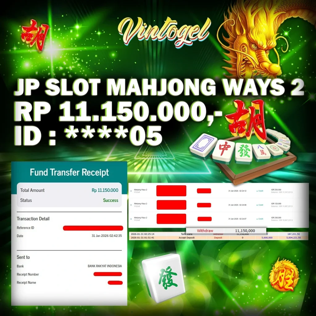 VINTOGEL sudah kesekian kalinya menjadi tempat panen slot, apalagi slot mahjong ways 2 yang sudah sangat terkenal di kalangan para slottermania. Baru saja ada member yang berhasil pecah telur dari permainan-nya di slot buatan provier Pg Soft. Tentunya semua sudah sangat mengenal nama provider ini, telah di akui oleh seluruh belahan dunia bahwa slot yang di hasilkan memiliki rata-rata win rate di atas 50% dengan tingkat ke gacoran mencapai 80% – 90%. Kombinasi terbaik pastinya main di Vintogel, bukan sebuah kabar baru. disinilah tempat panen paling top sejak tahun 2024 – 2025 dan bisa semakin gacor pada tahun 2026. VINTOGEL siap memberikan bayaran jackpot berapapun bagi para pemain yang menang disini mau itu ID lama dan baru semua akan mendapatkan bayaran layak. Semakin besar kemenangan maka semakin naik nama situs kami di mata publik, itulah moto kami sebagai penyedia permainan slot game seperti ini. Sudah tidak jaman berbicara tanpa bukti, rasakan sendiri seberapa beruntungnya main disini. Meski ini bukan salah satu hasil kemenangan terbaik, namun tetap merupakan jackpot yang layak di rayakan.